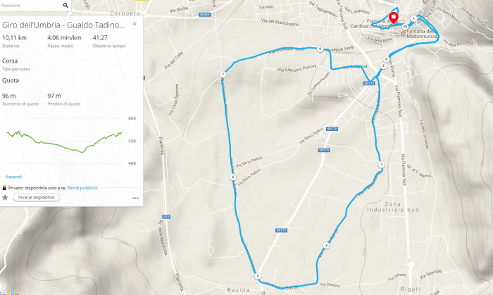 Mappa e altimetria del percorso