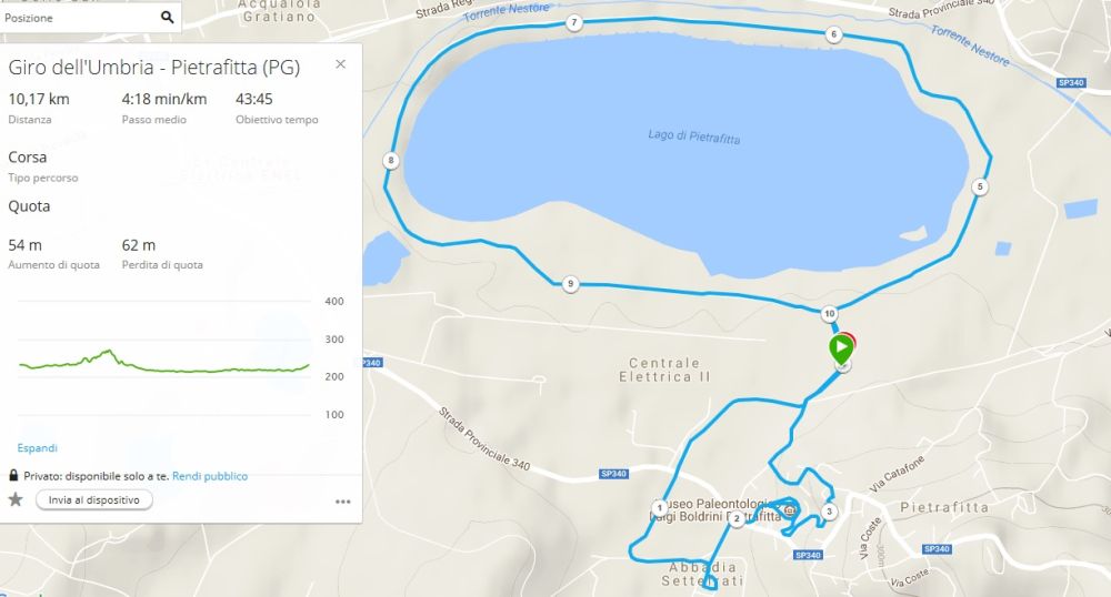 Mappa e altimetria del percorso